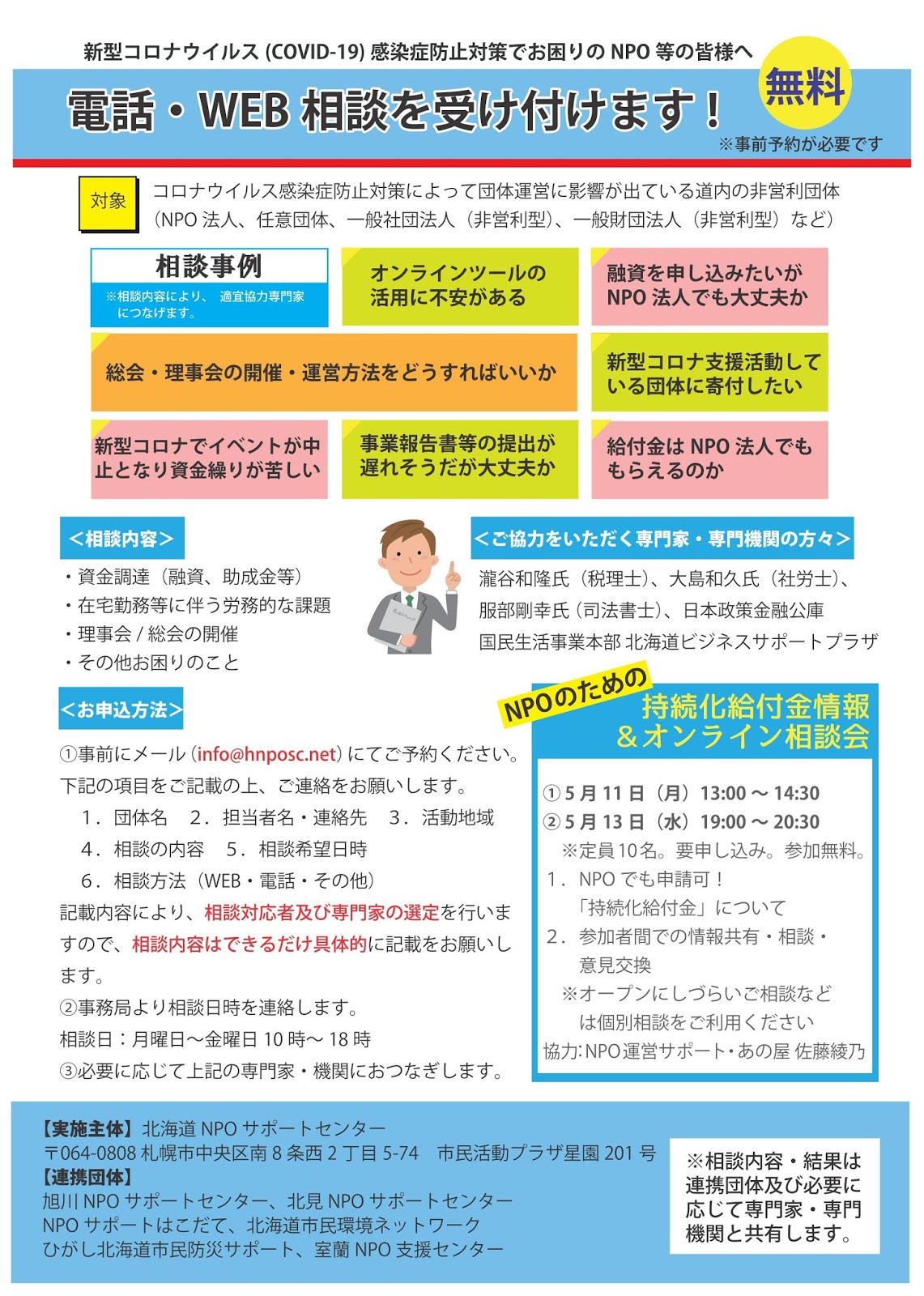 新型コロナウイルス(COVID-19)感染症防止対策でお困りのNPO等向け「電話・WEB相談窓口」について