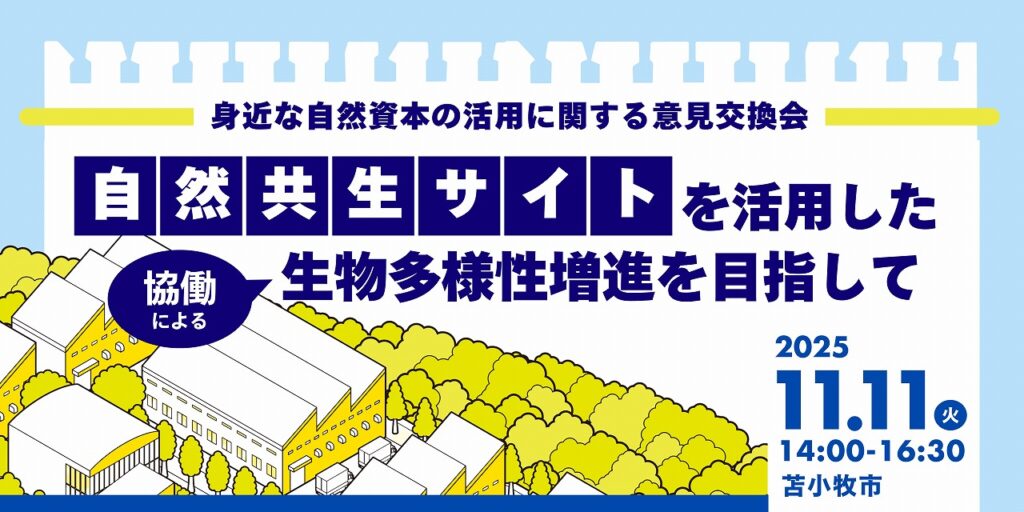 「自然共生サイトを活用した協働による生物多様性増進を目指して」をテーマとした意見交換会を、苫小牧市にて開催します。企業・行政・民間団体が一堂に会し、地域生物多様性増進法や自然共生サイト、生物多様性地域戦略等の情報を共有し、今後の自然共生サイト等の地域での展開、活用について意見交換を行います。ご関心をお持ちの皆さま、ぜひご参加ください。